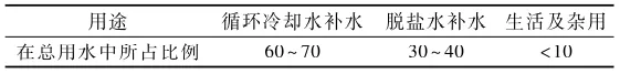 現代煤化工主要通過煤氣化產出合成氣,將合成氣進行變換、脫酸等工序后進一步合成最終產品。根據現代煤化工項目用水特點,從用水點分析,工藝直接應用的新鮮水在總用水量中所占比例較低,新鮮水主要用于補充循環冷卻水及制取脫鹽水,具體比例見表3。因此,現代煤化工直接產生的含鹽廢水主要包含循環冷卻水排污水以及脫鹽水排污水。隨著循環冷卻水用量的增大及濃縮倍數的增加,廢水經過逐級利用和處理后,最終會產生大量的濃鹽水,不僅會抑制微生物的活性,導致廢水處理系統不能正常運行,還使得出水tds超標,污染水環境?,F代煤化工含鹽廢水的處理主要包含低鹽廢水處理、濃鹽水處理以及高濃鹽水處理。