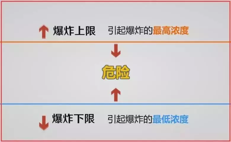 ②爆炸極限也稱爆炸濃度極限,是指可燃物質(zhì)(可燃氣體、蒸氣和粉塵)與空氣(或氧氣)必須在一定的濃度范圍內(nèi)均勻混合,形成預(yù)混氣,遇著火源才會發(fā)生爆炸,這個濃度范圍。