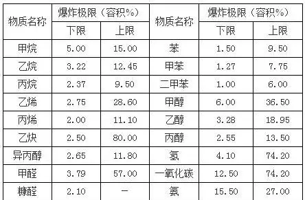 ③常見物質(zhì)的爆炸極限如下,僅供參考: